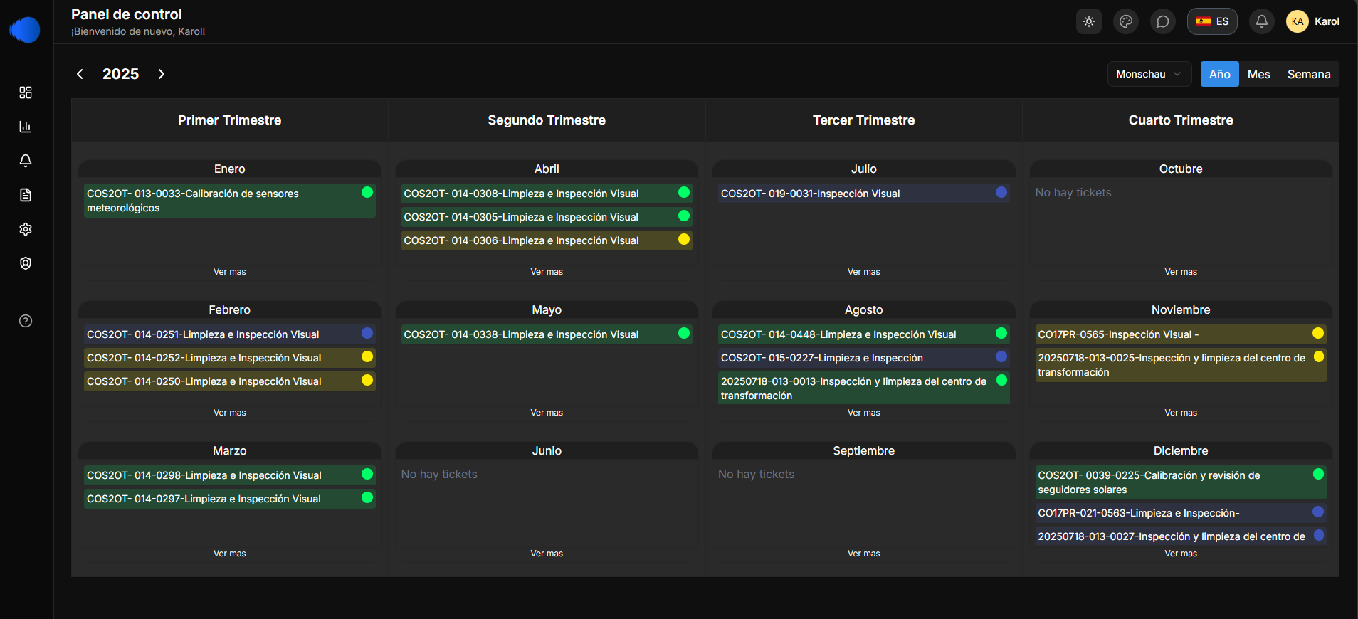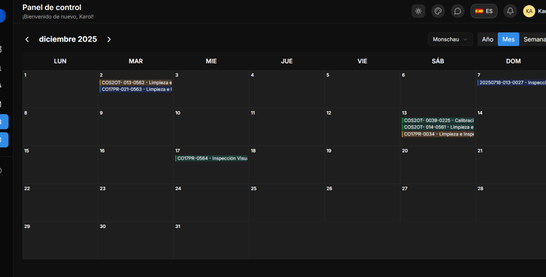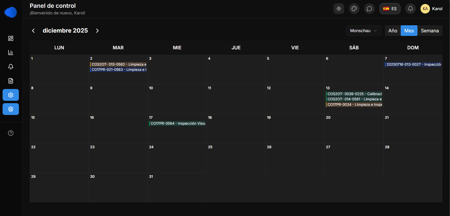 Permite planificar y visualizar tareas de mantenimiento en una línea de tiempo, asegurando un control eficiente de las actividades programadas.